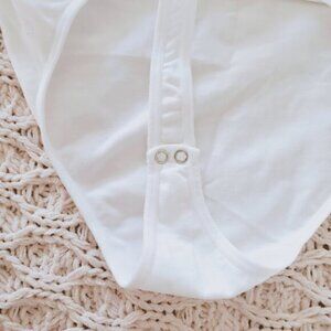 Forever 21 V Neck Strappy Thong Bodysuit Onesie- White