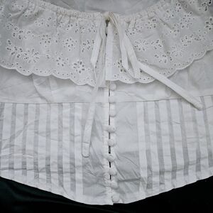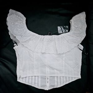Forever 21 White Eyelet Ruffle Off The Shoulder Open Crop Top Sz XS 100% Cotton