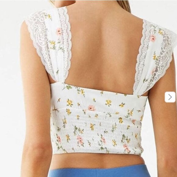 Forever 21 White Floral Print Sweetheart Crop Top, M