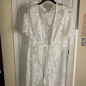Forever 21 White Lace Duster / Kaftan | Sheer Floral Layering Piece | Boho Dream