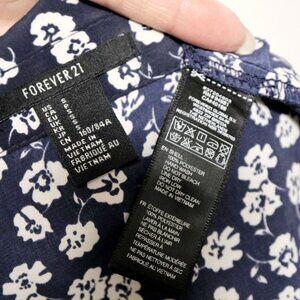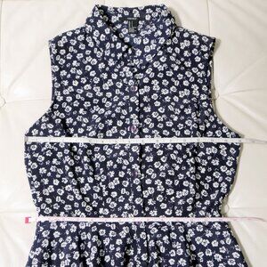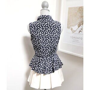 Forever 21 White & Navy Blue Floral Sleeveless Peplum Blouse