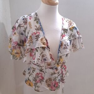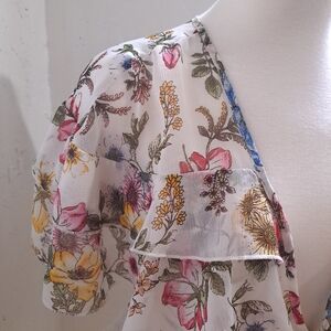 Forever 21 | White colorful flower ruffled cardigan blouse.