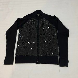 Forever 21 Women's Black Full Zipper Sequin Sweater Size Small