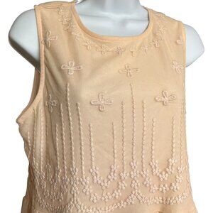 Forever 21 Womens Dress. Pink Netting Embroidered Floral Feminine Fairy. Sleeveless. Zippered Side. Lined. Little bit of stretch.