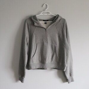 Forever 21 Womens Grey Sz M 1/2 Zip Cropped Fleece Hooded Pullover Sweater