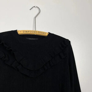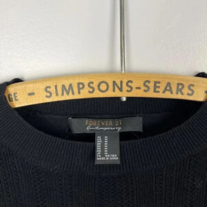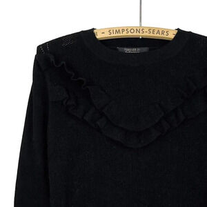 Forever 21 Womens Medium Black Frill Crewneck Pullover Knit Sweater