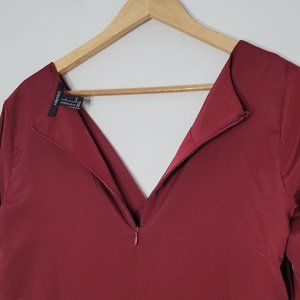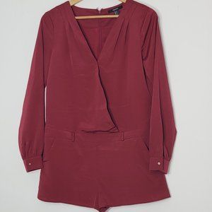 Forever 21 Women's Red Wine Long Sleeve V-Neck Back Zipper Pockets Rompers Size S/P
