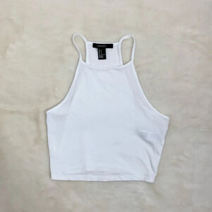 Forever 21 Women's Tank Top Cropped Racerback White sleeveless Size Small