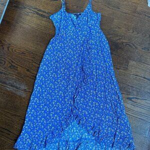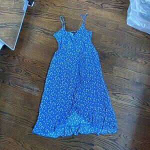 Forever 21 blue maxi cascading small flowers ruffle dress size Medium