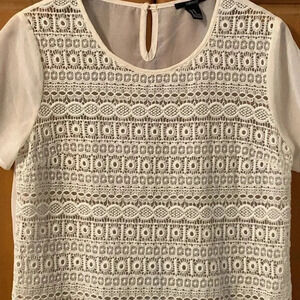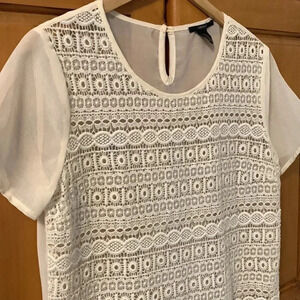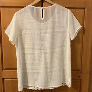 Pretty short sleeve top. Cream color. Semi sheer sleeves and back. Need to wear a camisole. Size Medium