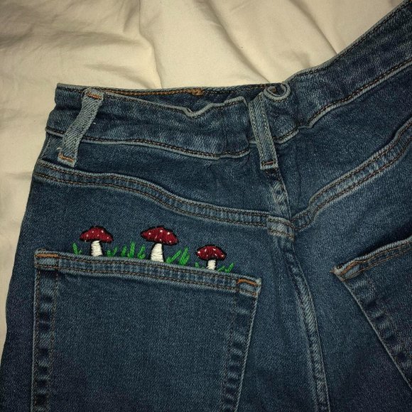 🪡 I’ve put an elastic in the waist and it now fits me perfectly and can now fit a range of sizes. I also did the mushroom embroidery by hand 🪡