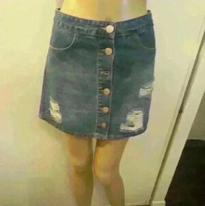Forever 21 distress sexy demin casual jean skirt with button front skirt in excellent condition with no visible signs of flaws