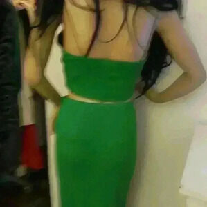 Forever 21 green bandeau fitted strtch trend sexy party casual 2 piece knitset S