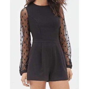 Forever 21 l Black Polka Dot Pocket Lace Romper