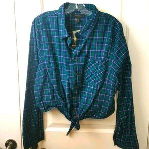 New with tags. Ties at front to snatch that waist button down plus size 2x flannel shirt