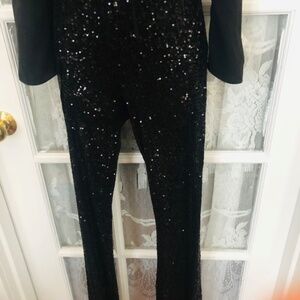 Forever 21 size exsmall black sequinned pants, wide bell bottoms, elastic waist