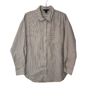 Forever 21 striped button up shirt and pull-on shorts set women's size L