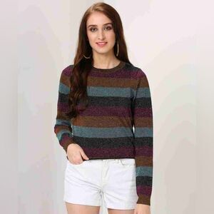 Forever 21 Contemporary Size Large Striped Round Neck Multicolor Sweater