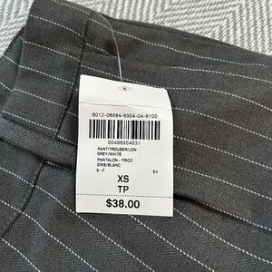 New with tag Forever 21 pinstripes tailored wide leg pant, size x-small. High rise. Zip and button fastening. Side pockets and fake back pockets. Soft fabric; 72% polyester, 26% rayon, 2% spandex