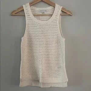 This Forever New tank top features a ribbed texture in a cream color, offering a stylish and breathable option for warm weather. With its sleeveless design and classic crew neckline, this top is perfect for layering or wearing on its own.