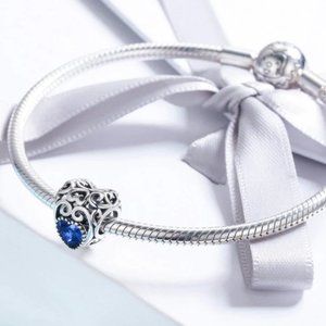 Forever Queen Silver Heart with Blue Birthstone Charm for Snake Chain Bracelet