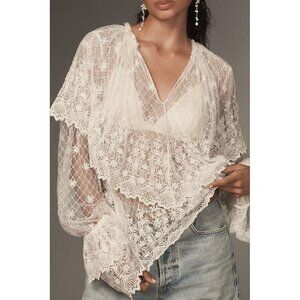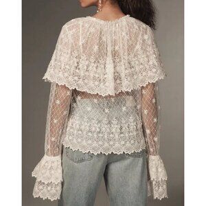 Forever That Girl Long-Sleeve white Lace-Bib Blouse M