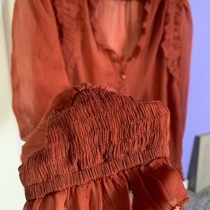 Forever That Girl Medium Copper Ruffled Blouse Romantic Bohemian Sheer Boho S