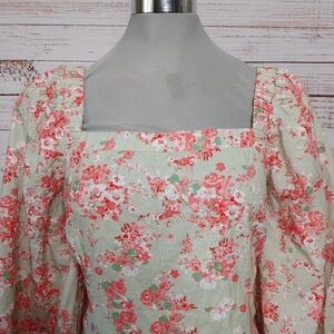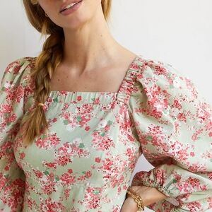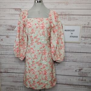 Perfect for date night or drinks with friends, this mini features puffed sleeves and a floral print for an ultra-femme finish. Brand new with tags. garment pinned to show shape.