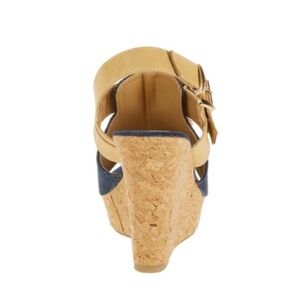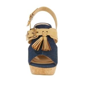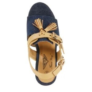 Forever Young tasseled high wedge boho-inspired sandal W/ 3.5'' heel 💙 Dark blue denim type material