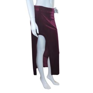Forever21 Burgundy Stretch Velvet High Slit Long Long Skirt