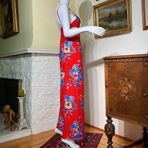 As new, cool Forever 21 tropical print cutout jumpsuit. Bold red background with large colourful floral print, back zipper, adjustable spaghetti straps. Perfect summer outfit, easy to wear all day long.