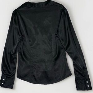 Forget Me Not Women's Black Long Sleeve Satin Button Up Shirt Sz XL V-neck Light