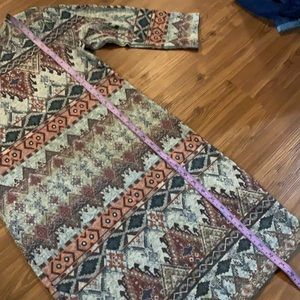 This dress is super flattering for whichever body type! Made of polyester and spandex, it hugs all the right places. Very pretty pattern on it. Sleeves are 3/4 sleeve.