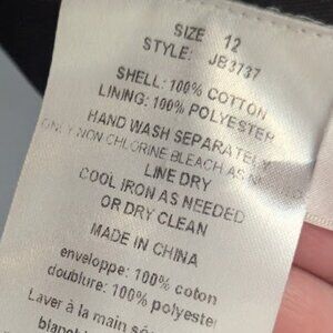 - 100% cotton (lining is polyester) - fit and flare style - zips in the back - creased but in very good condition