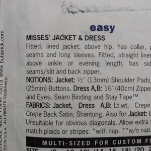 SUGGESTED FABRICS: Jacket, Dress A,B: Lightweight Crepe, Faille,