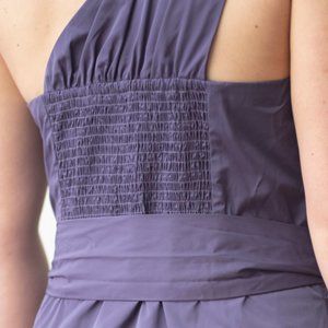 Excellent condition, deep lavendar one-shoulder dress. Worn once. Fist size 10 - 12. Seaming on bust and rouging on back add subtle details. The ballooning effect on the bottom is fun to move in. Great party dress with a vintage feel!