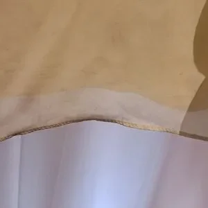 This dress was worn once as a bridesmaids dress for a wedding. No alterations were made *except bustling* - see photos for hem damage (very minimal) and bustling.