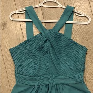 Beautiful long formal dress! Halter neck style with pleated detailing and zipper up the left side for easy wear. Perfect for occasions including prom, formals, and wedding guest. Worn once for a formal - brand new condition. Size 6 - fits TTS