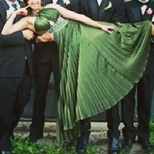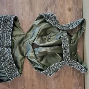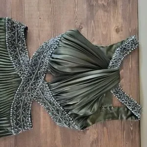 BEAUTIFUL pleated godess-style prom dress with an open back. Darker olive green colour and very comfortable and only worn for a few hours at my graduation.