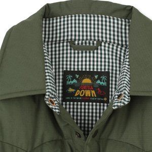 Texan-Inspired Down Shirt (more like a jacket) in rip-stop cotton nylon fabric with anti-drip treatment.