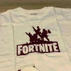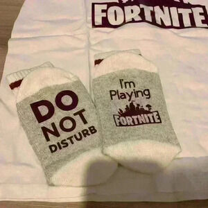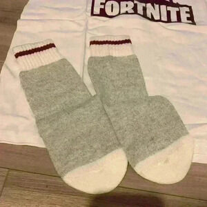 Medium youth (10-12) gildan brand Tshirt with a pair of socks.