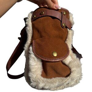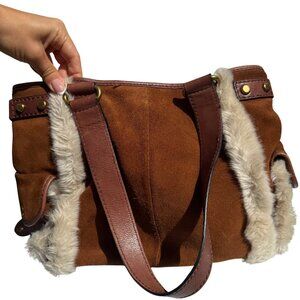 Fossil Adrina Tote – Large Tan Saddle Brown Genuine Leather + Faux Fur