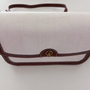 High quality 100% genuine leather. Color is multi natural, white flat, medium brown sides and back. Comes with a crossbody strap in same medium brown leather. Brand new with tags and care card. Never been used. Few creases on the back.