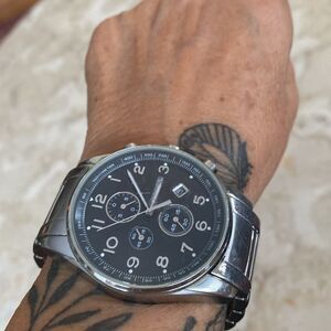Stunning, huge chunky men’s Fossil Arkitekt Chronograph 45mm stainless steel watch. Full 8.25” strap. Although this is a men’s watch, if you like chunky watches, it is totally unisex.