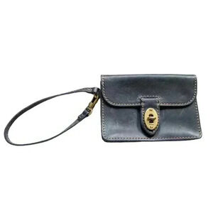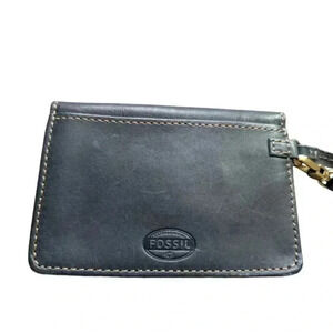 Fossil Austin Wristlet Purse Turn Lock Leather Black Brass Unisex Women One Size