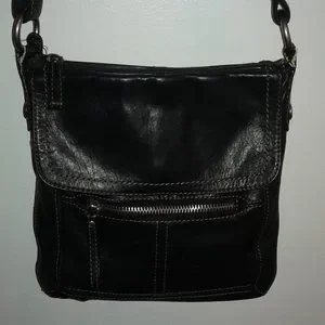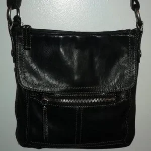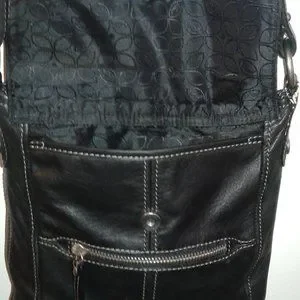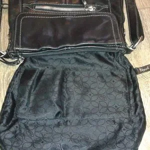 Front of purse has large flap pocket with magnetic closure and a small zippered pocket