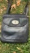 This is a beautiful pebble leather Crossbody bag. Silvertone hardware. Strap is adjustable. Strap is leather on one side and canvas on the other side. Exterior front has a snap pocket. Logo on front has a scratch on it. Otherwise, this bag is in excellent condition. Interior is black signature fossil fabric with one zipper pocket. Top zipper closure. Has two small studs on front one on top zipper pole and one on Crossbody strap. Little bit of wear on right hand side of front metal plate where the leather is see pictures. Contrasting brown stitching, which looks very sharp with the black leather. 7 inch width by 7 1/2 inch height. Thank you for your interest in buying sustainable and helping our beautiful 🌎