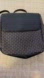 Stylish Fossil travel bag with monogram pattern. Black flap adds elegance. Perfect for chic travels.