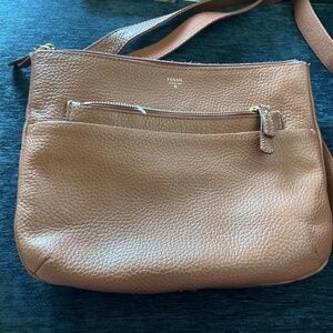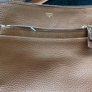 Fossil Brown Pebbled Leather Crossbody Messenger Bag