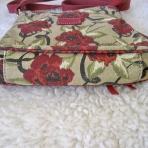 Fossil canvas crossbody bag. Color: Red/Green/Multi. SIZE: See Description. Features: